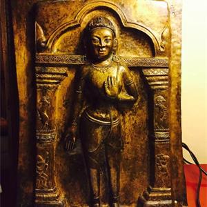 后藏精品,日喀则,白居寺里面墙壁上的,锤碟工,紫铜鎏金,站卓玛。一流工艺,金水也很美。高度41