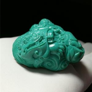 宝贝描述:选用秦古808果冻玉化料精工雕刻,成品62克?? 瓷釉级,高度44.2宽45.2厚26,收藏重器,待结缘